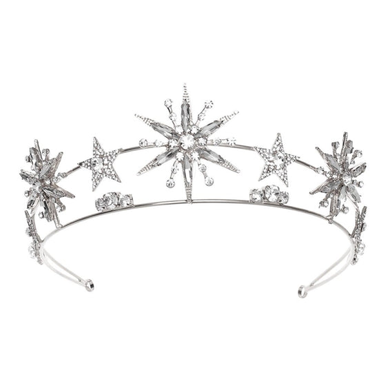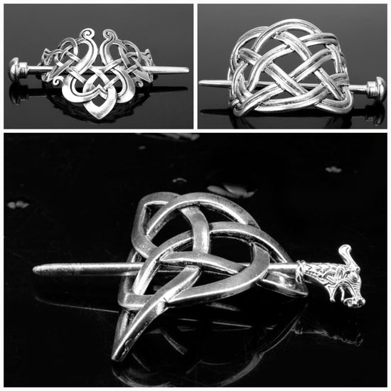 Celestial Silver Crescent Moon Pagan Five Pointed Star Metal Hairpin Barrette Clip