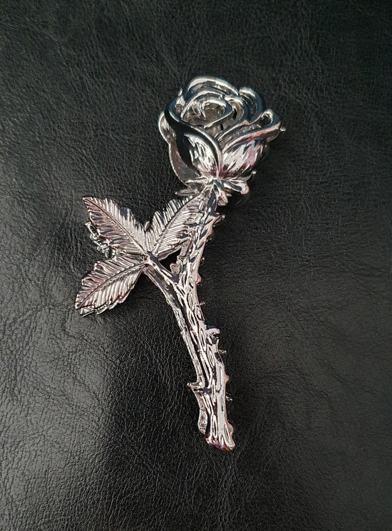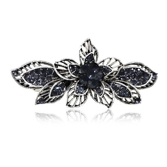 Silver Floral Winged Bat Crescent Moon Gothic Alternative Metal Hairpin Barrette Clip