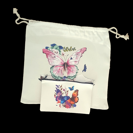 Tote bag and Zip case sets. Ready to go - but can be personalised if required