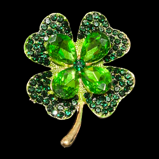 Emerald Green Shamrock Four leaf clover pin brooch and earrings set large St Patrick's Day