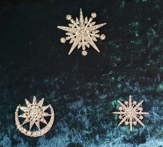 Sun and moon star snowflake silver crystal brooch pin
