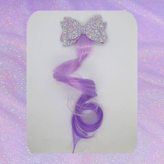 Sparkly shimmery double layered bow with coloured hair extension hair clip