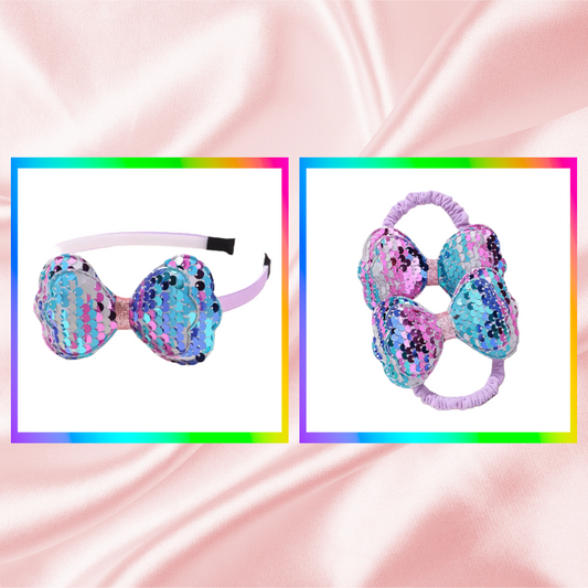Large Sequined Material Pastel Rainbow Hair Bow Clip