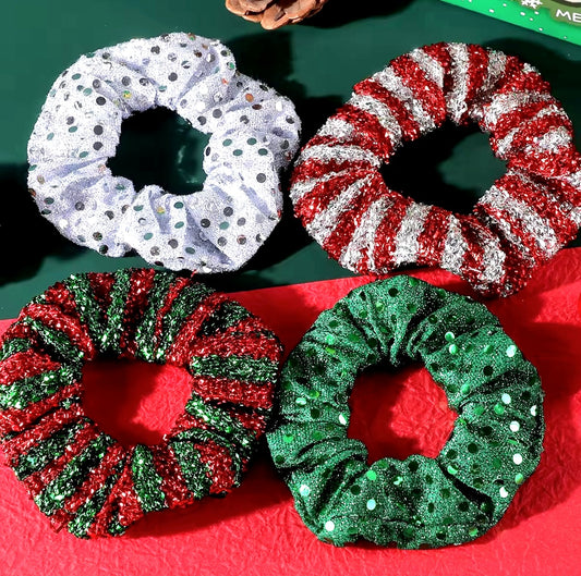 Christmas sparkly hair scrunchie bobbles red,green,silver set of 4
