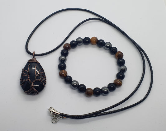 Tigers eye, Black obsidian and Hematite bead bracelet