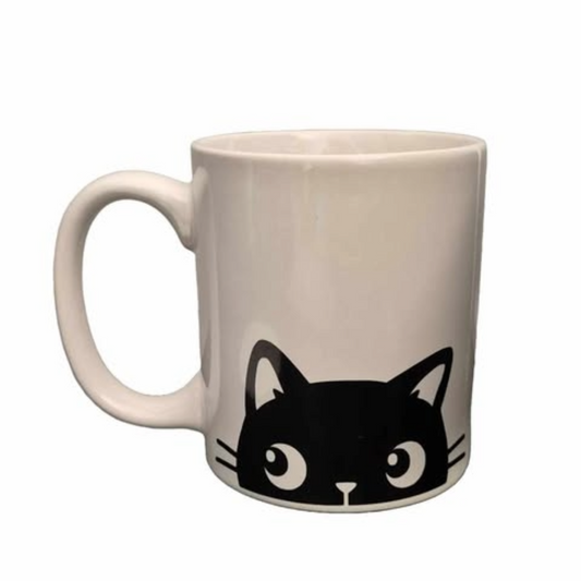 Ceramic mug with vinyl cat design