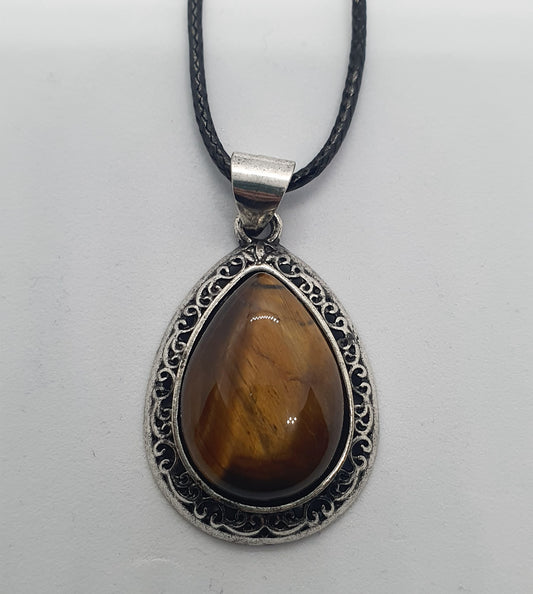 Amethyst And Tigers Eye Gemstone Pendant Necklaces