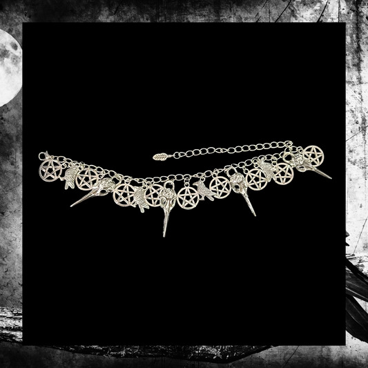 Raven Skull Gothic Crow Pagan Pentacle Pentagram Charm Bracelet