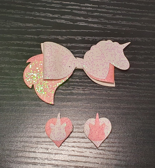 Pink & White Glittery Unicorn Bow and Mini Clip set