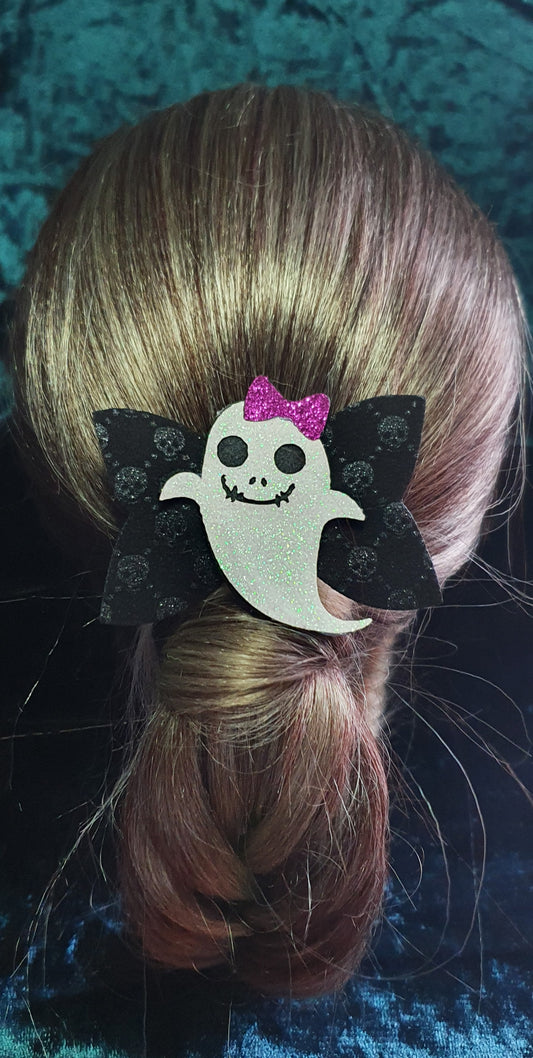Halloween Themed Hair Bow Faux Leather Black White & Orange Pumpkin Spider Striped Hair Bow