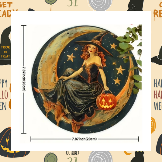 Moon Witch 8X8" Round Aluminium Wall Art Décor