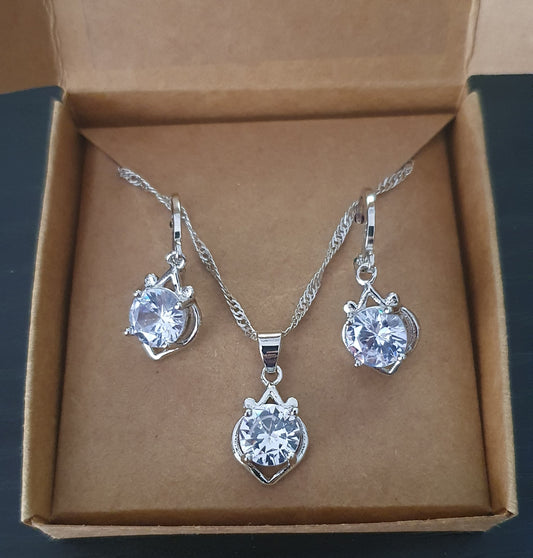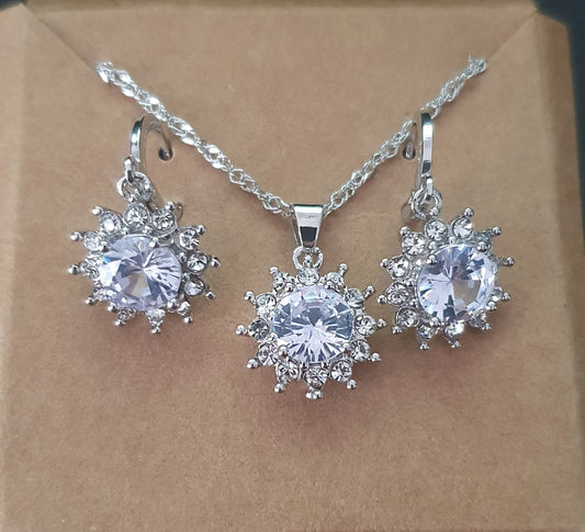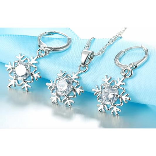 Snow flake silver plated necklace and earrings set with cubic zirconia