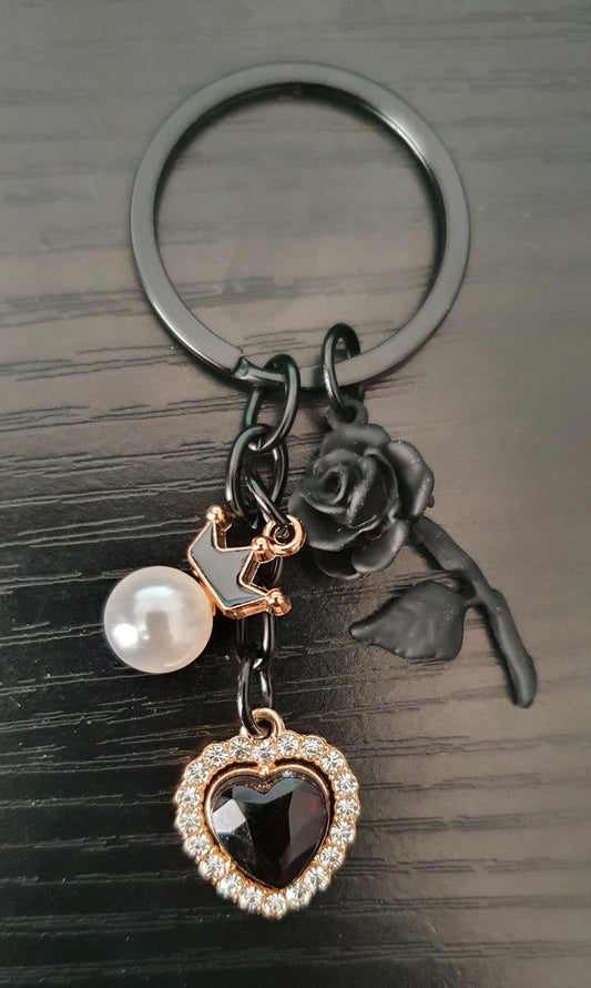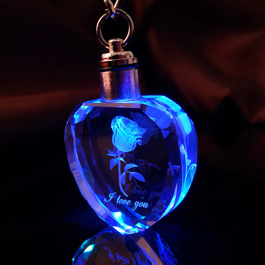 Changeable Colourful LED Light Crystal Heart Shape Key Chain With 3D Rose Flower Laser Engraved Key Ring Pendant