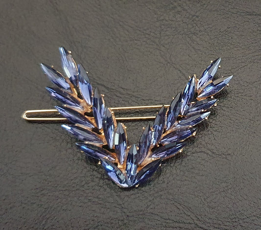 Crystal Rhinestone V Shaped Leaf Feather Hair Clip