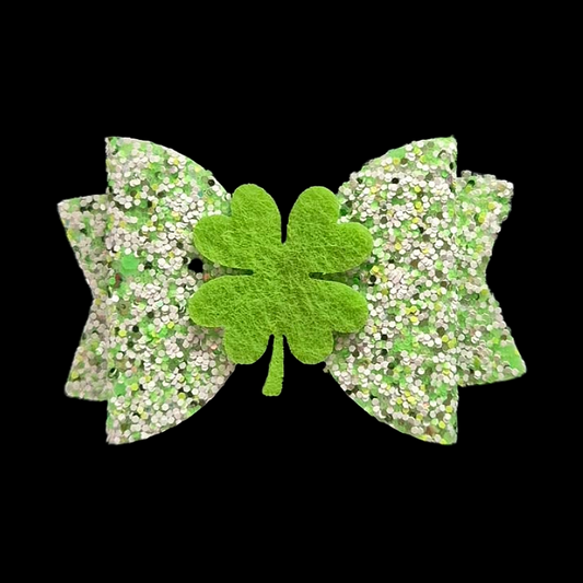 Green two tone glitter bow clip hair accessory