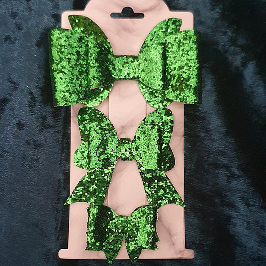 Sparkly Emerald Green Bow trio set large, medium and small bow set