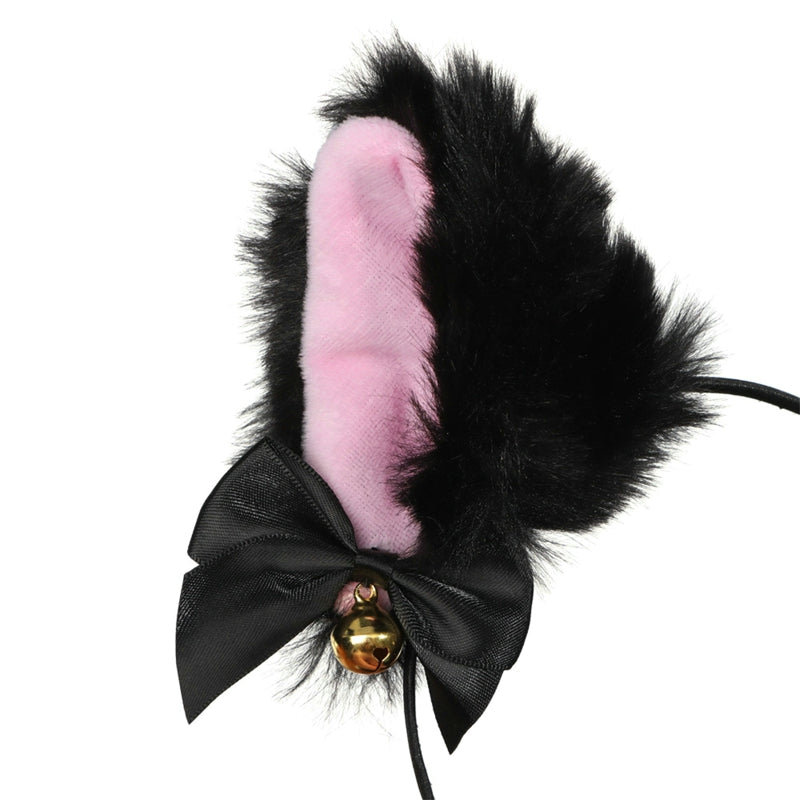 Black headband with Faux fur ears with ribbons and bells