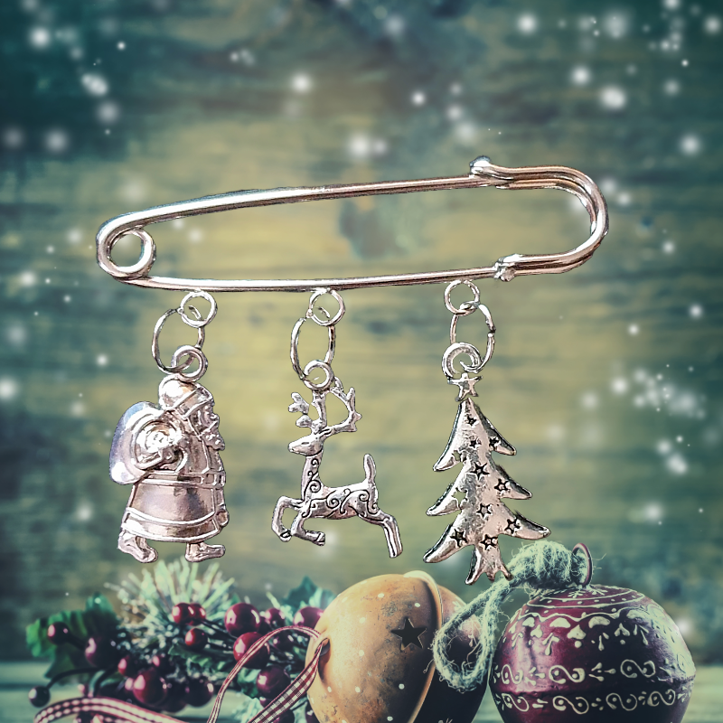 Make your holiday outfit pop with our Christmas pins! Each pin features 3 festive charms, adding a touch of whimsy and charm. Perfect for adding some holiday cheer to any outfit. Get yours now!