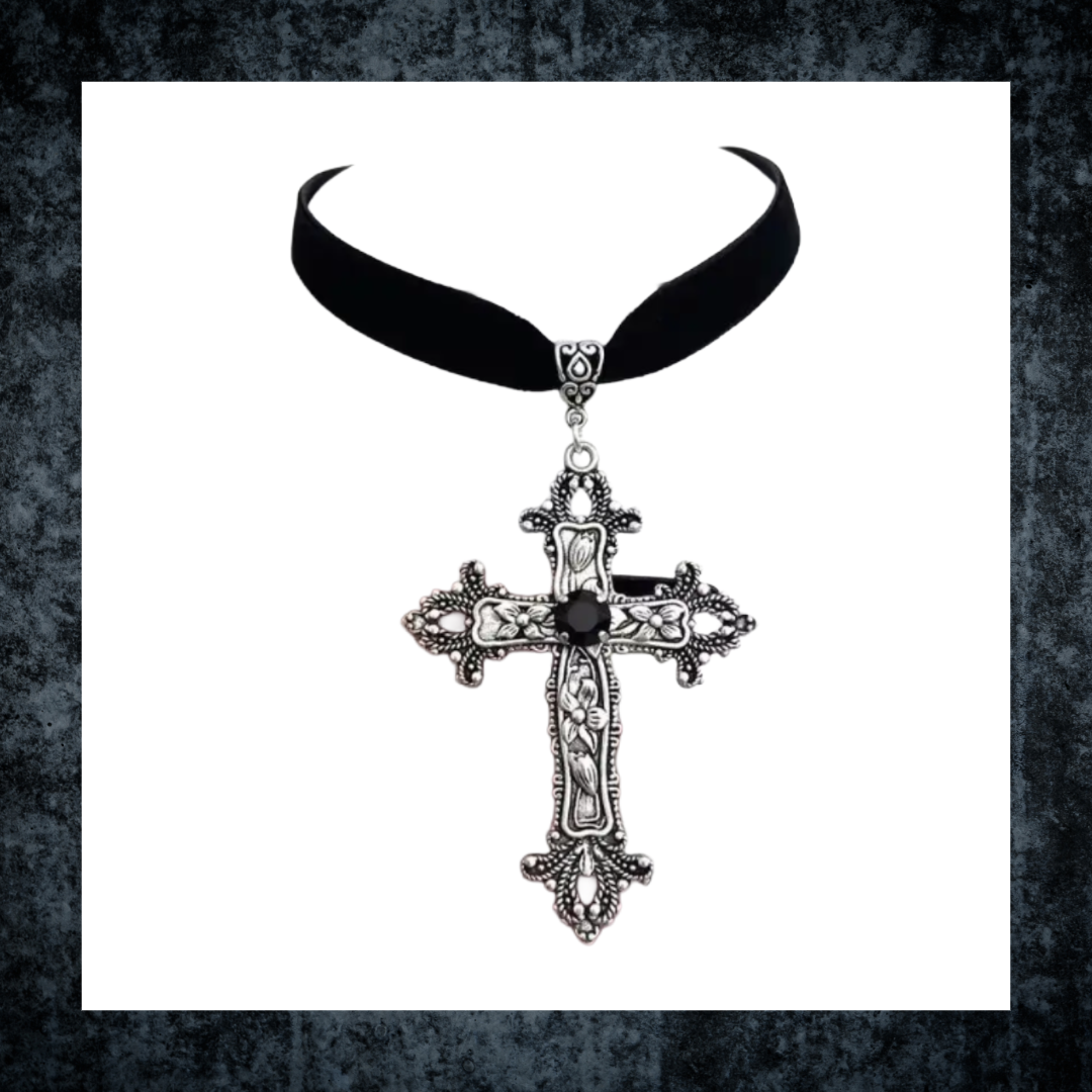 Elevate your style with this striking Classic Gothic Large Cross Pendant, elegantly suspended on a soft black velvet choker. Perfect for adding a bold, timeless edge to any outfit, this pendant combines gothic charm with everyday wearability. The rich velvet enhances comfort while highlighting the detailed cross design, making it a standout accessory for those who dare to express their unique fashion sense.