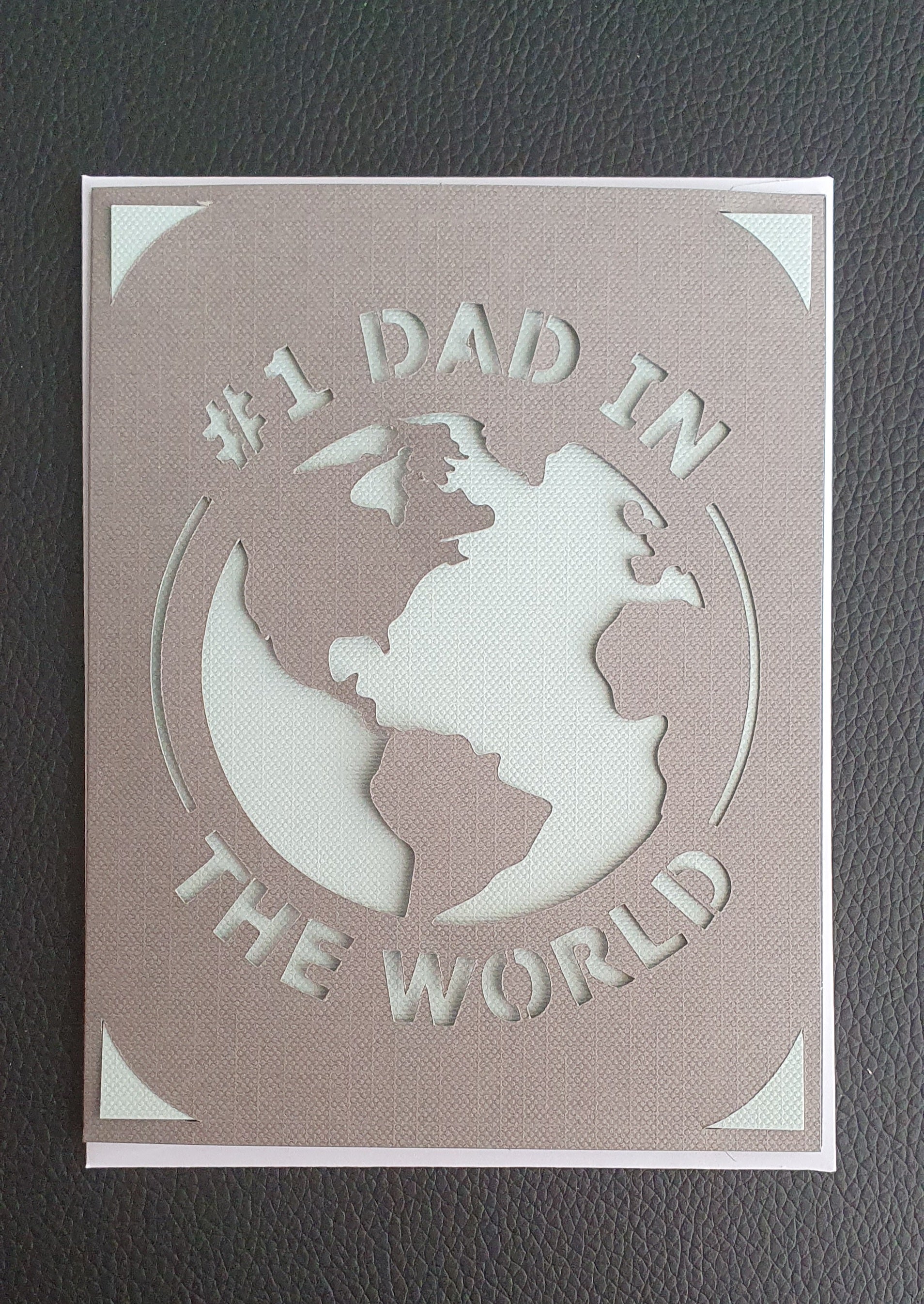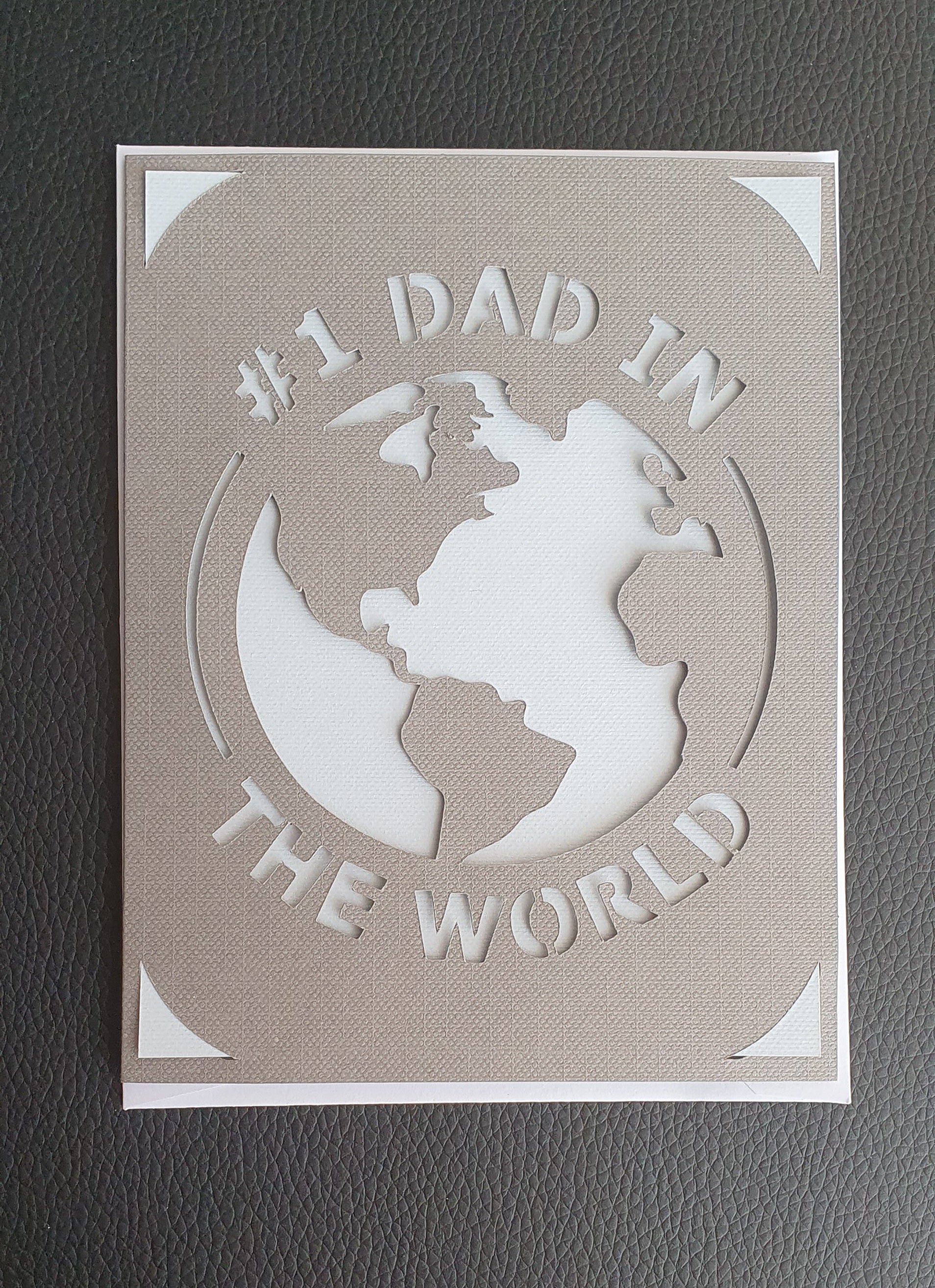 Show your appreciation this Father's Day with this unique card featuring a Best Dad in the World design. This card is blank inside, making it perfect to write your own heartfelt, handwritten message to your dad. Let him know how much you love and appreciate him with this special card!