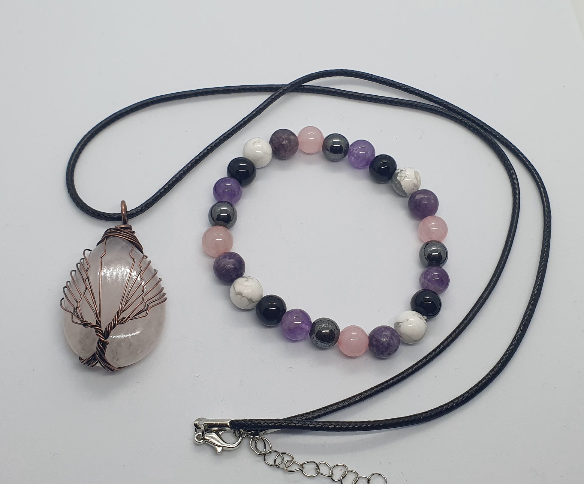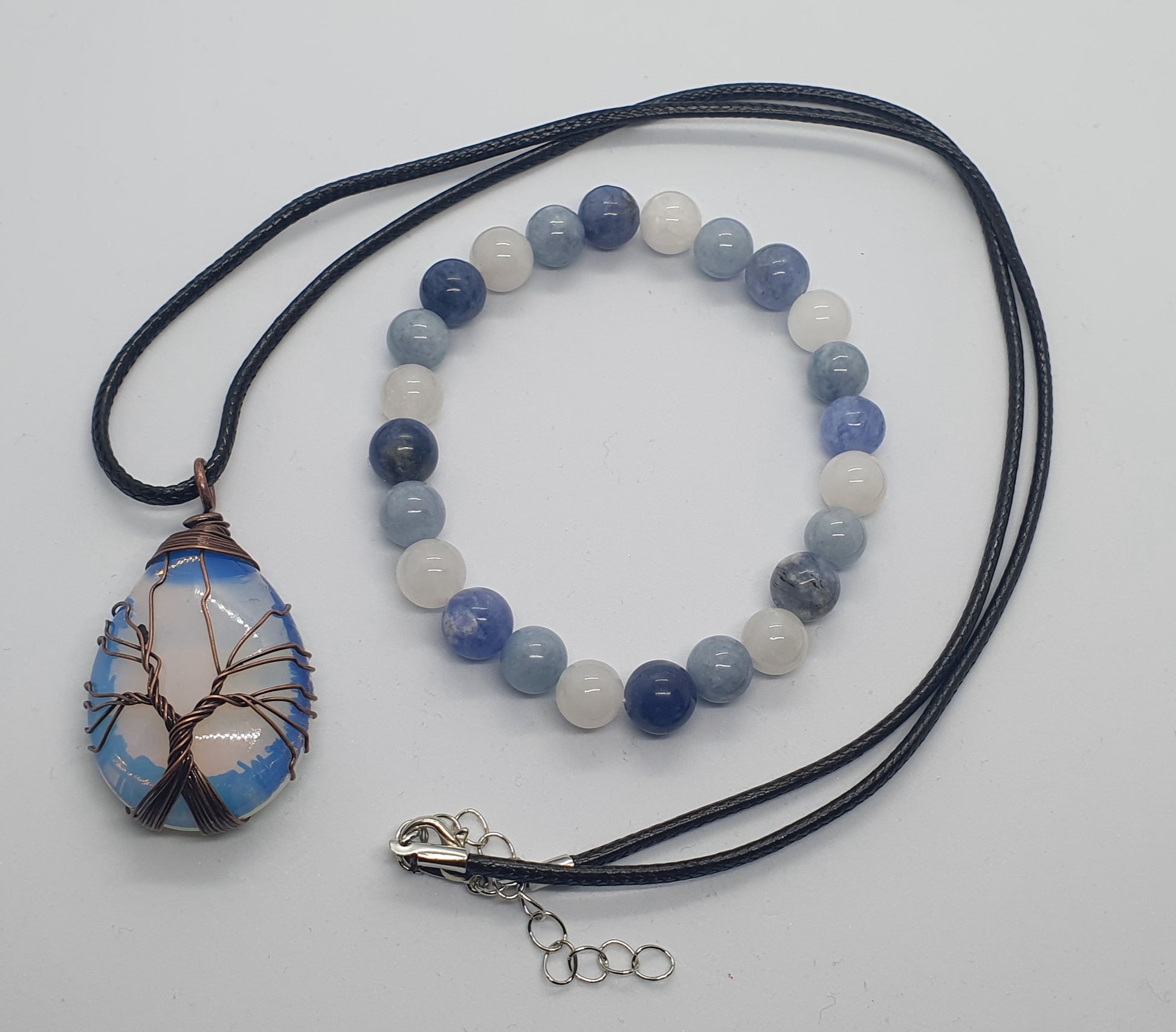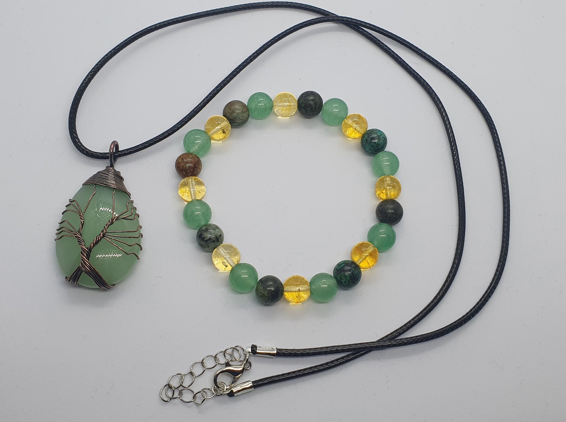 Indulge in the beauty of nature with our Natural Gemstone Necklace and Bracelet Set. The set features stunning, natural gemstones that will add a touch of elegance to any outfit. Embrace the potential benefits of feeling grounded, connected to the Earth, and confident in your style.
