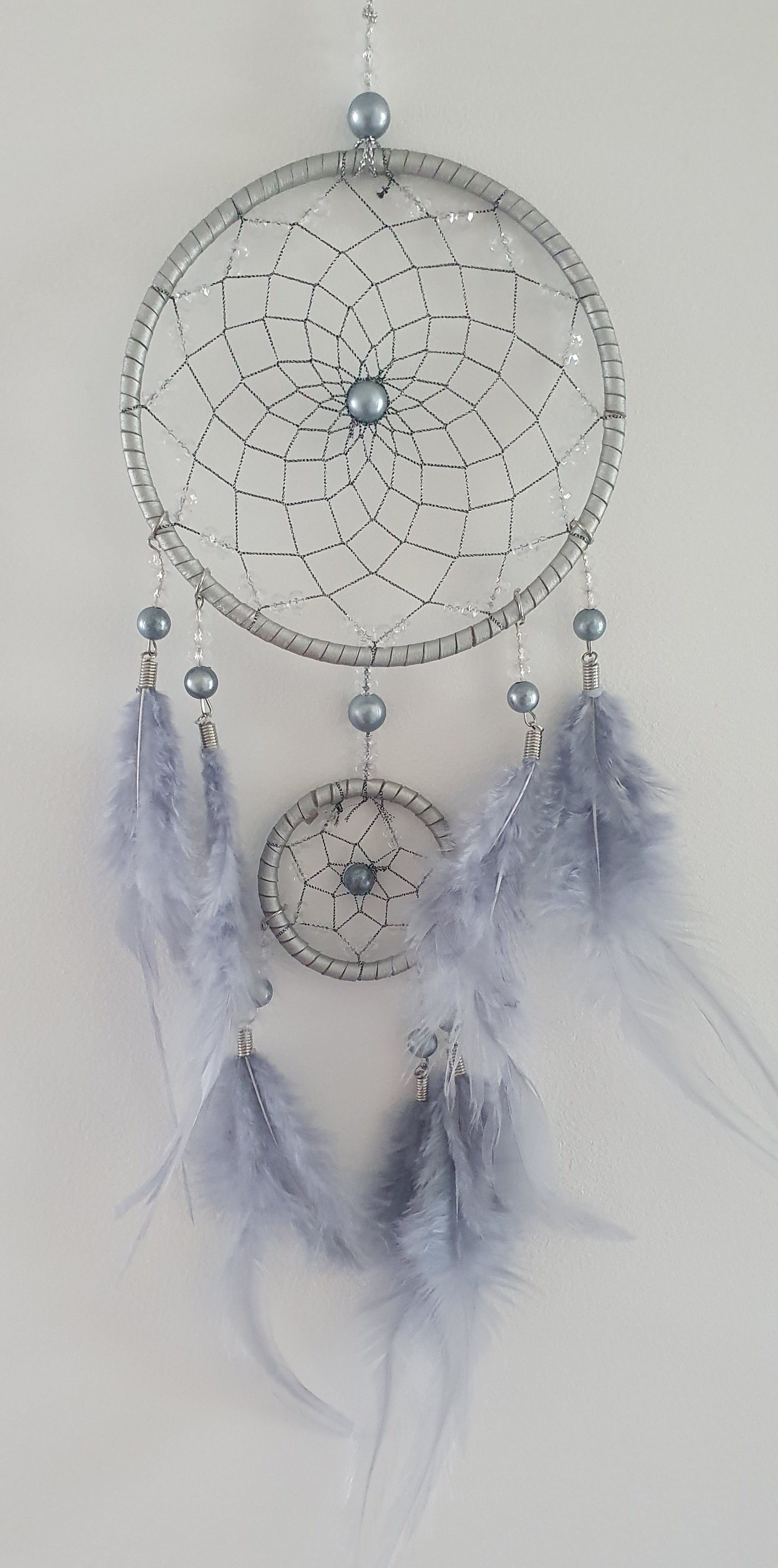 Grey Two-Ring Beads and Feathers Dream Catcher Wall Decoration