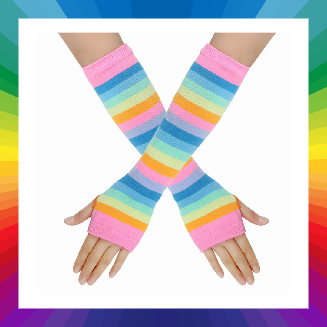 Rainbow stripped fingerless gloves arm warmers