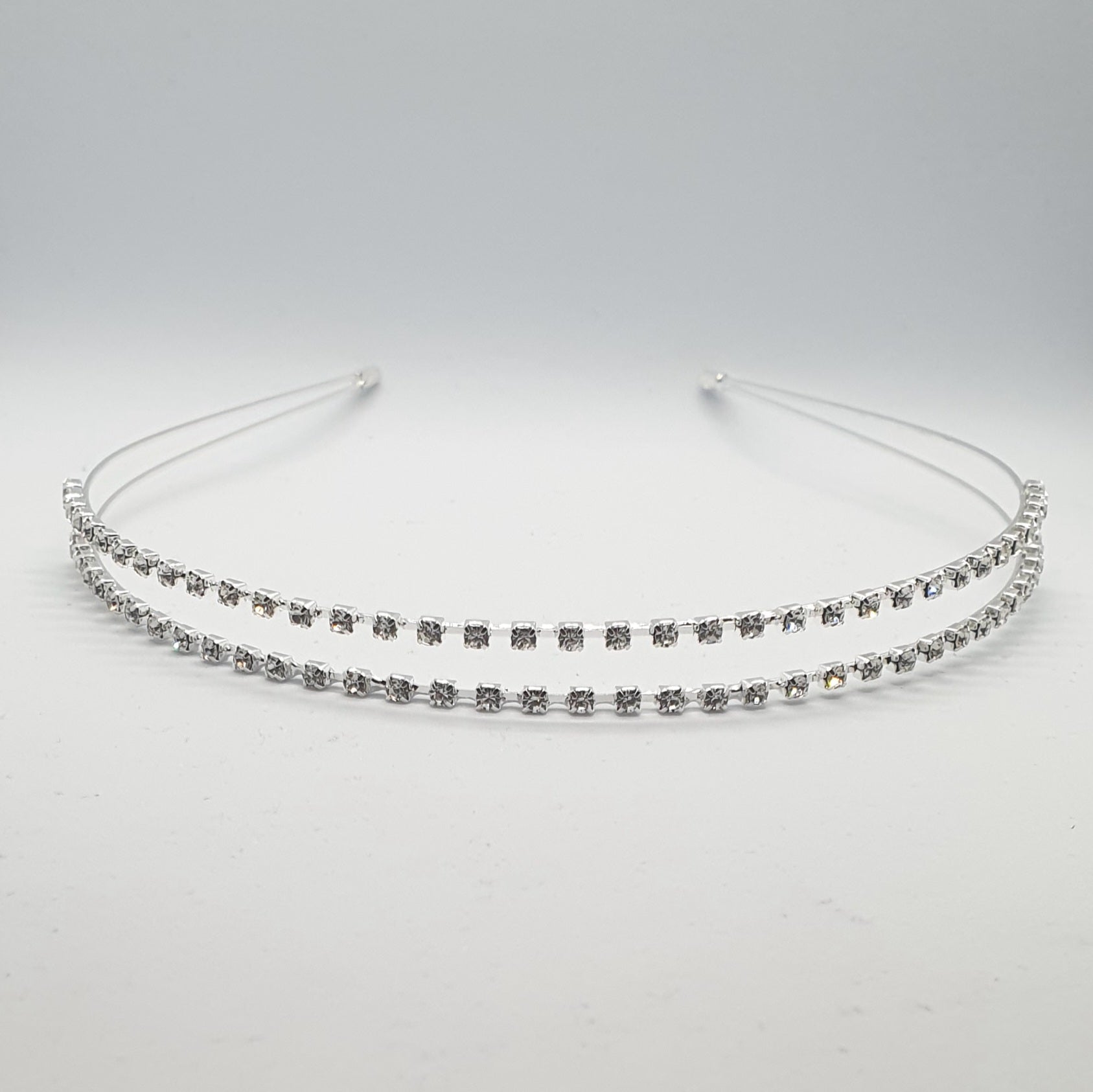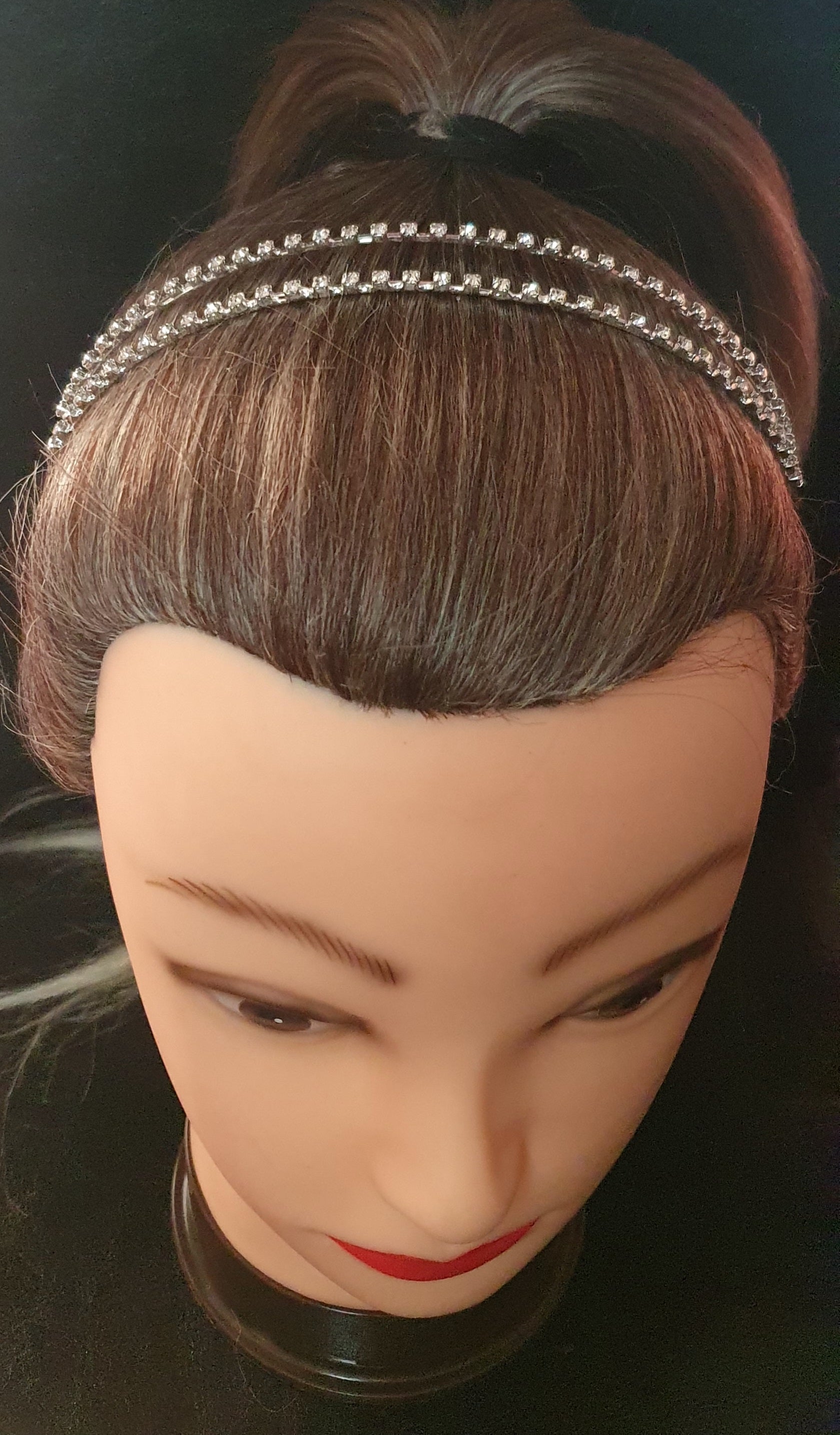 Embrace elegance with our Rhinestone two band headband! This stunning headband features two rows of sparkling rhinestones, adding a touch of glamour to any outfit. Perfect for weddings, proms, or special occasions. Elevate your look with this must-have accessory!