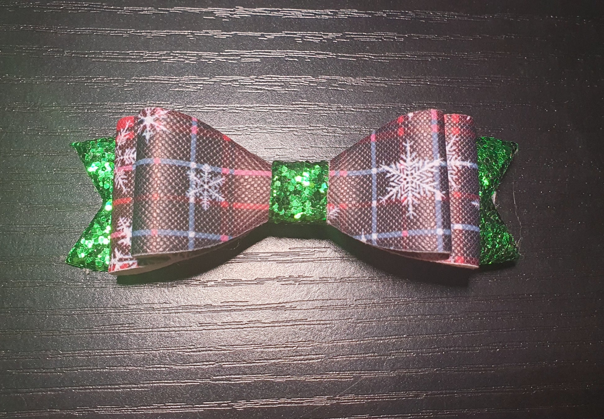 Spread the winter cheer with this awesome tartan snowflake and glittery green hair bow. Perfect for holiday festivities, this bow will make any look pop with festive fun! It's an instant statement-maker: just clip it in and you're ready to sparkle!