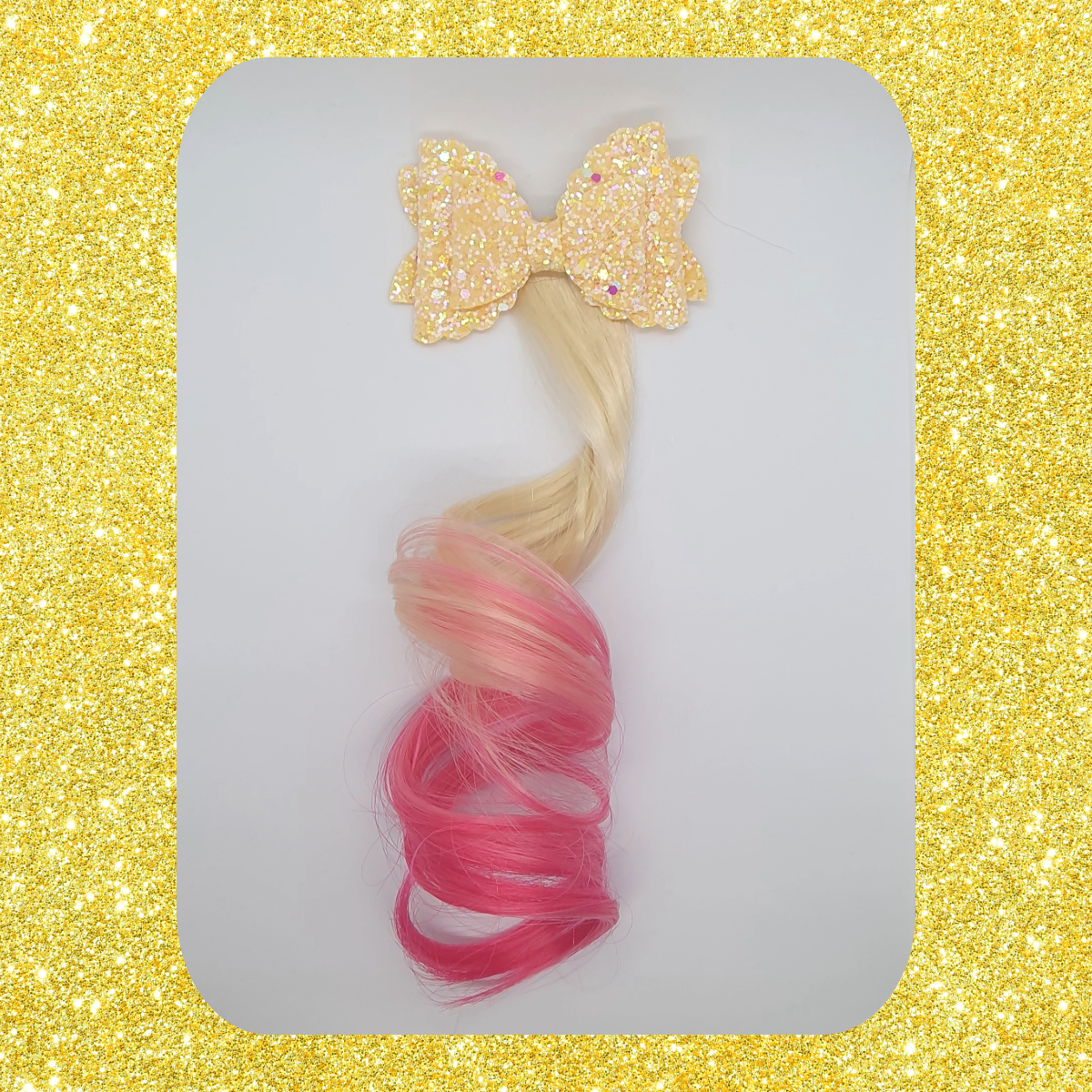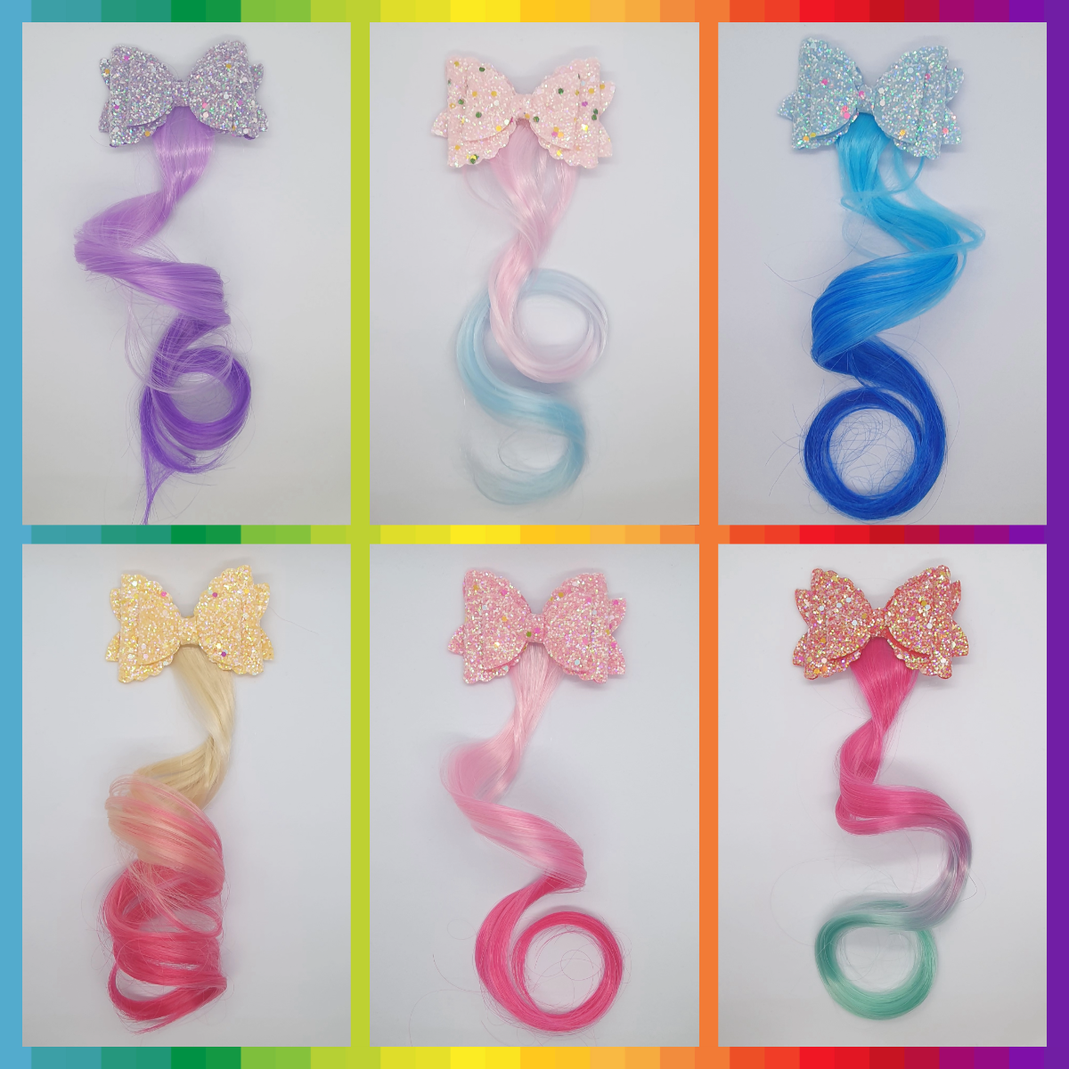 Enhance your style with our Sparkly Shimmery Double Layered Bow Hair Clip! Featuring vibrant coloured hair extensions, this clip will add a touch of sparkle and shine to any hairstyle. Make a statement and stand out from the crowd with this must-have accessory.