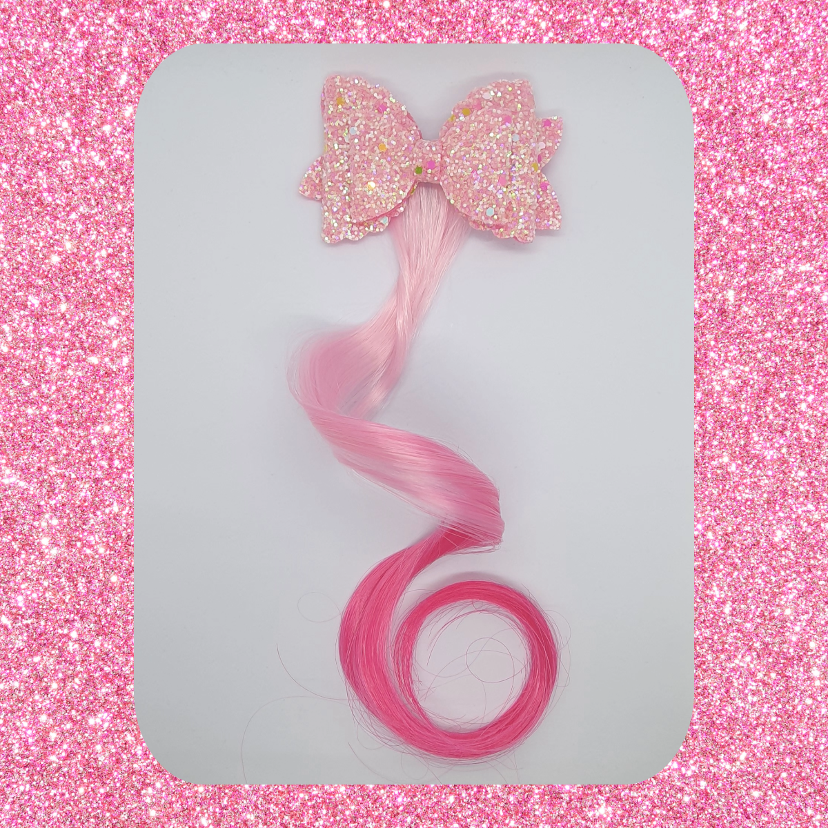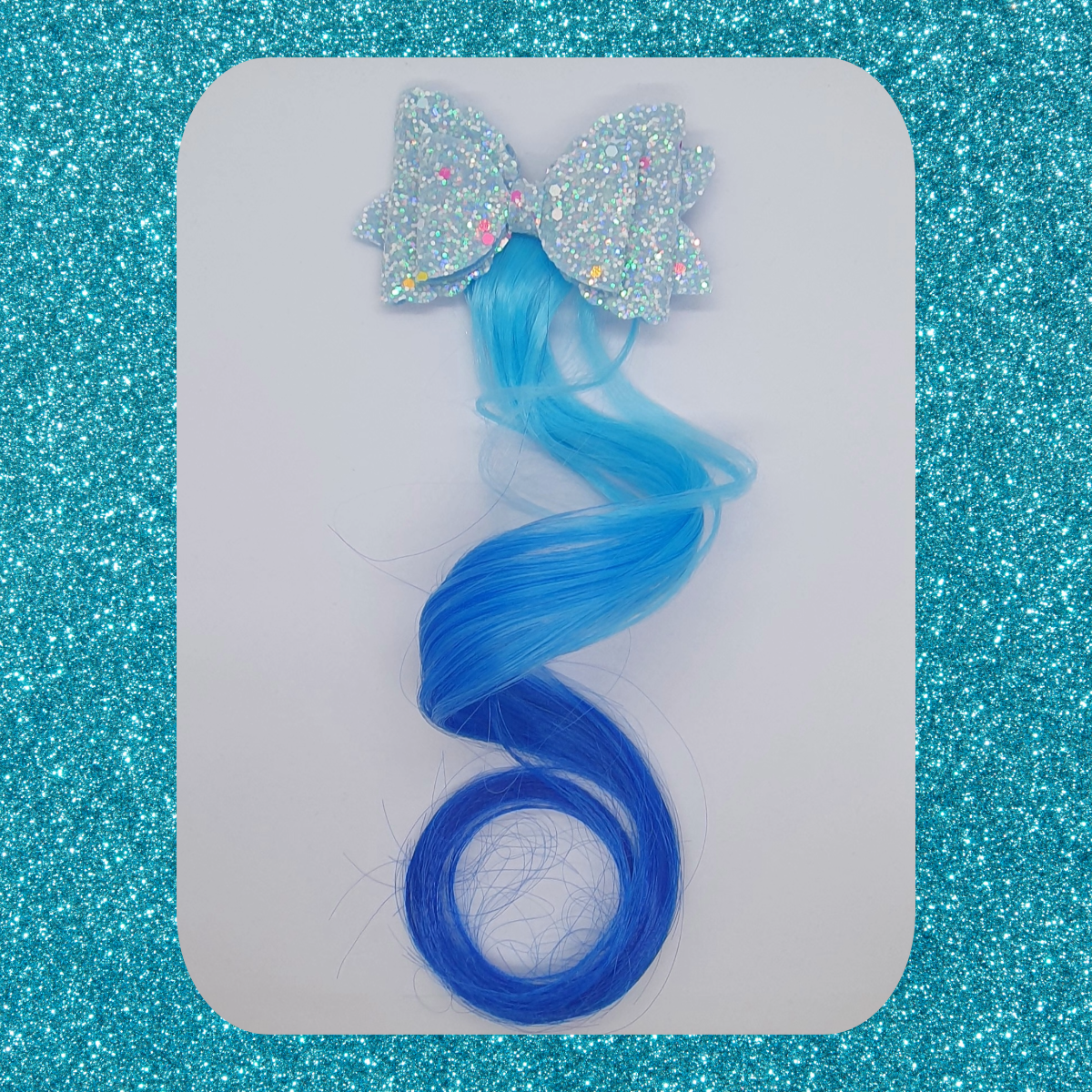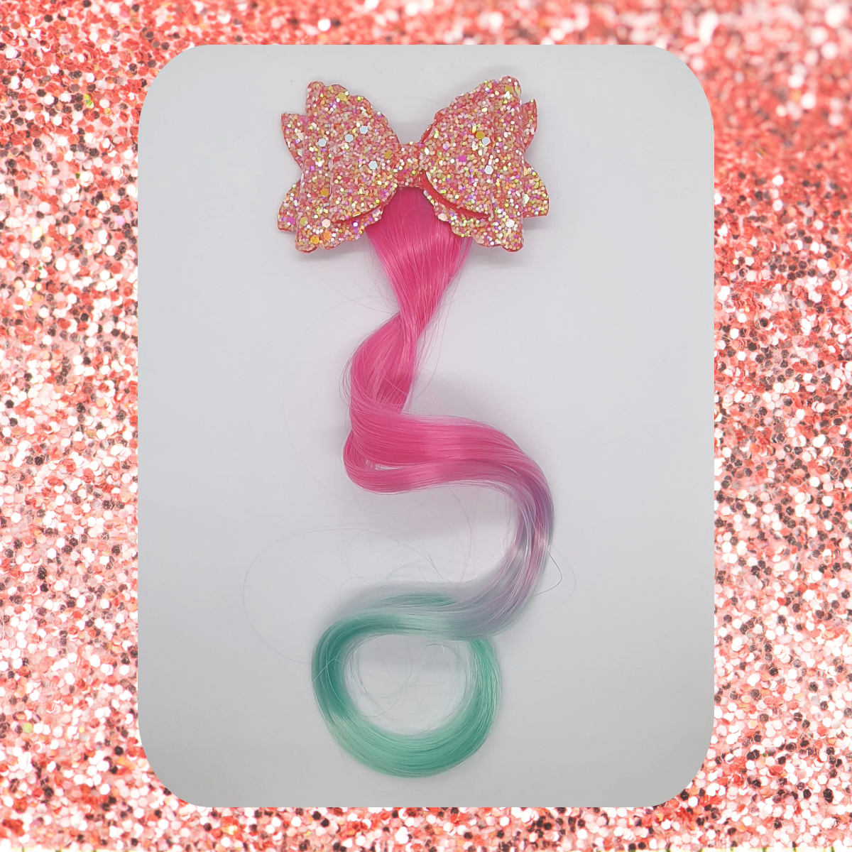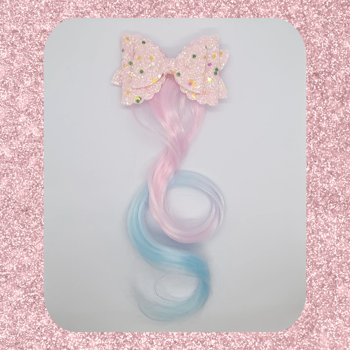 Sparkly shimmery double layered bow with coloured hair extension hair clip