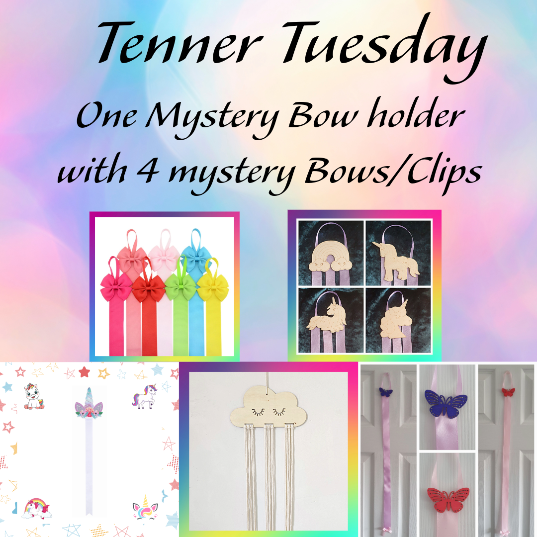Tenner Tuesday Mystery Bow holder with 4 Bows/clips