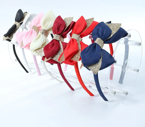 Sparkle and shine with our triple layer ribbon and sparkly hair bow headband! The combination of soft ribbon and dazzling sparkles will add the perfect touch of glamour to any hairstyle. Stay effortlessly stylish and stand out from the crowd with this stunning accessory.