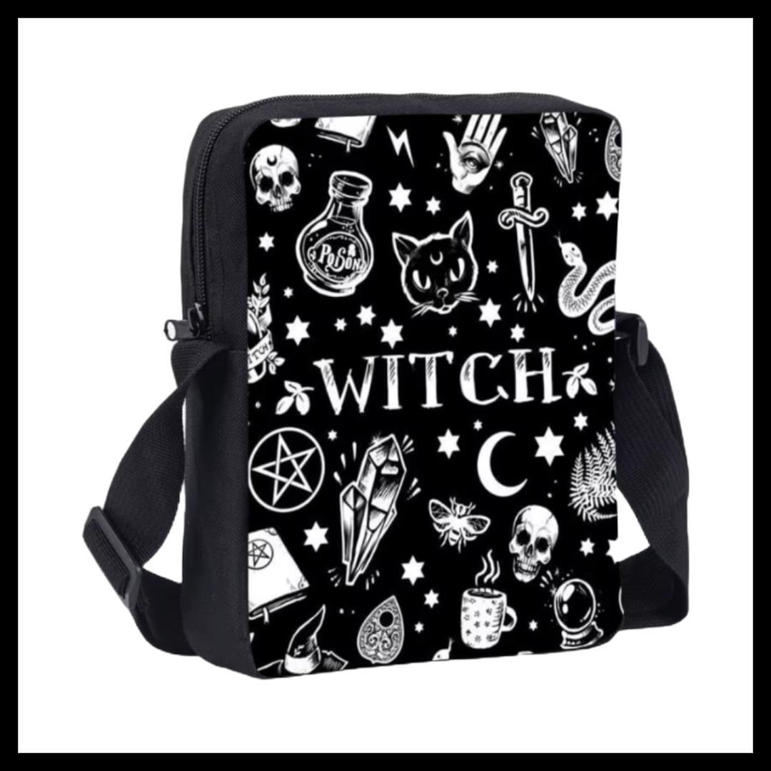 Embrace your witchy side with this black and white cat potion gothic shoulder bag. Perfect for carrying your spell books and potions, this bag is both stylish and functional. Show the world your love for all things magical with this must-have accessory.