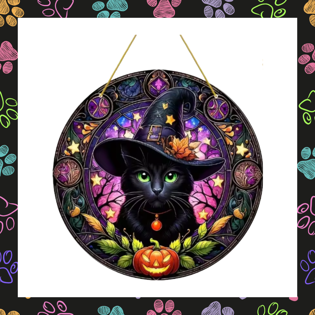 Witches black cat pumpkin autumnal design acrylic hanging window wall plaque